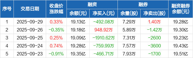 片仔癀:融资净偿还492.08万元,融资余额19.13亿元(09-29)