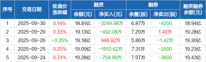 XD片仔癀:融资净偿还3249.98万元,融资余额18.81亿元(09-30)