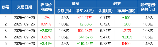 华纺股份:融资净买入414.21万元,融资余额1.12亿元(09-29)