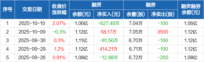 华纺股份:融资净偿还627.49万元,融资余额1.06亿元(10-10)