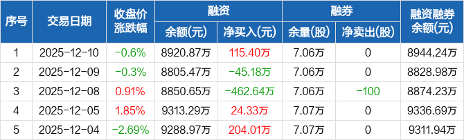 华纺股份:融资净买入115.4万元,融资余额8920.87万元(12-10)