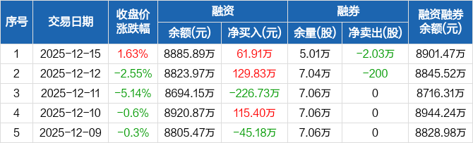 华纺股份:融资净买入61.91万元,融资余额8885.89万元(12-15)