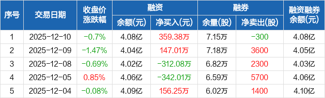 宁夏建材:融资净买入359.38万元,融资余额4.08亿元(12-10)
