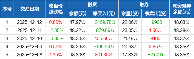 士兰微:融资净偿还2469.78万元,融资余额17.97亿元(12-12)