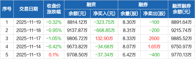 洪城环境:融资净偿还323.75万元,融资余额8814.12万元(11-19)