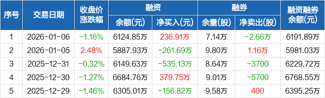 洪城环境:融资净买入236.91万元,融资余额6124.85万元(01-06)