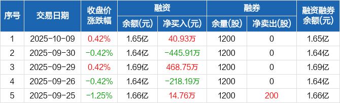 好当家:融资净买入40.93万元,融资余额1.65亿元(10-09)