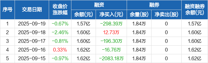 风神股份:融资净偿还298.39万元,融资余额1.57亿元(09-19)