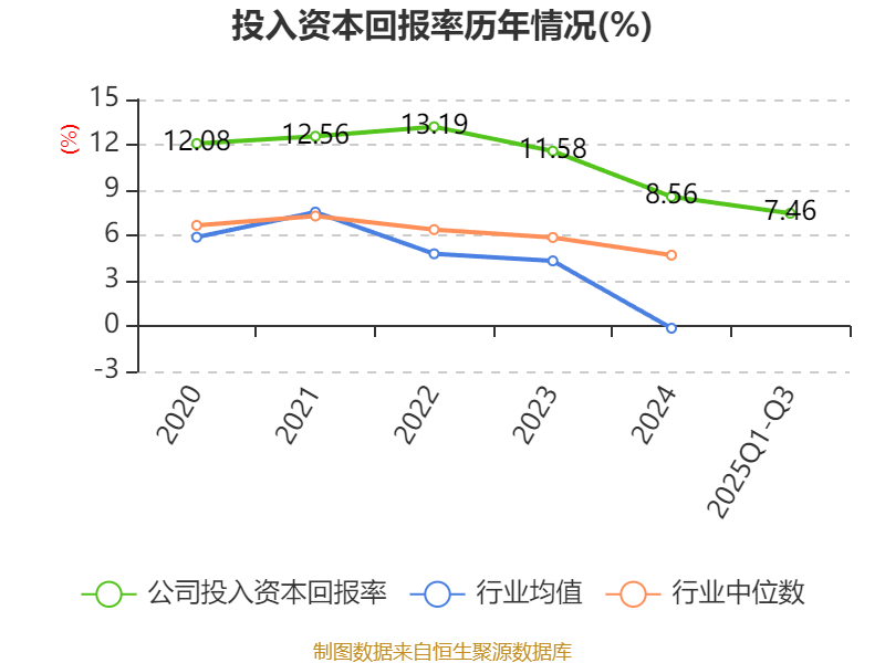 盈利能力方面, 2025年前三季度公司加权平均净资产收益率为7.53%,同比上升0.55个百分点。公司2025年前三季度投入资本回报率为7.46%,较上年同期上升1.15个百分点。