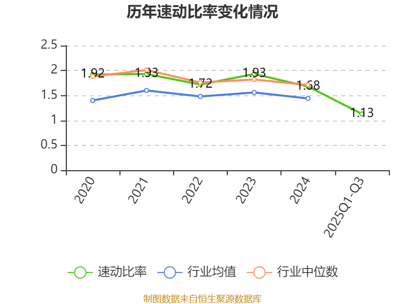 2025年前三季度,公司流动比率为1.4,速动比率为1.13。