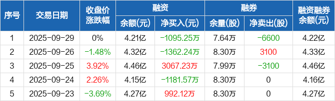 双良节能:融资净偿还1095.25万元,融资余额4.21亿元(09-29)