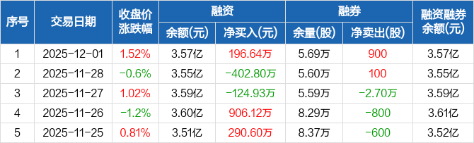 福能股份:融资净买入196.64万元,融资余额3.57亿元(12-01)