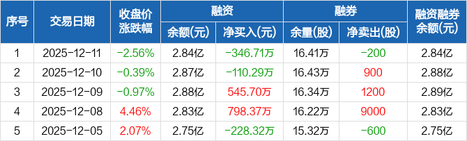 晋西车轴:融资净偿还346.71万元,融资余额2.84亿元(12-11)