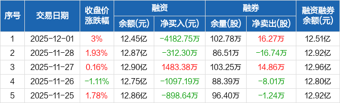 驰宏锌锗:融资净偿还4182.75万元,融资余额12.45亿元(12-01)