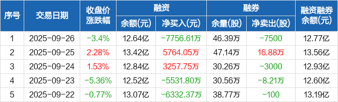 烽火通信:融资净偿还7756.61万元,融资余额12.64亿元(09-26)