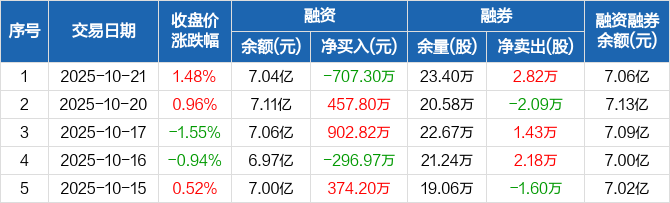 科达制造:融资净偿还707.3万元,融资余额7.04亿元(10-21)