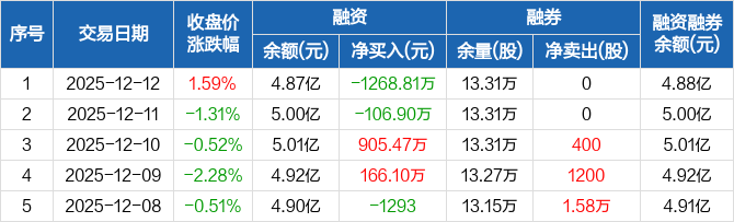 中化国际:融资净偿还1268.81万元,融资余额4.87亿元(12-12)