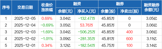 华丽家族:融资净偿还132.47万元,融资余额3.04亿元(12-05)