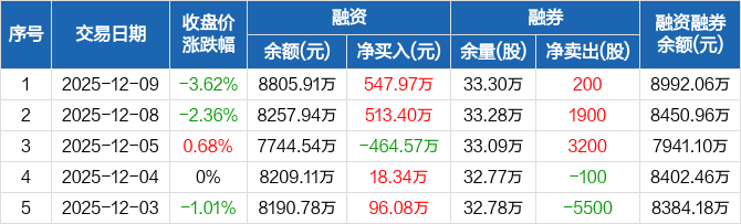 方大特钢:融资净买入547.97万元,融资余额8805.91万元(12-09)
