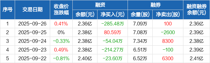 上海能源:融资净偿还285.48万元,融资余额2.36亿元(09-26)