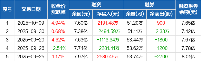 天富能源:融资净买入2191.48万元,融资余额7.6亿元(10-09)