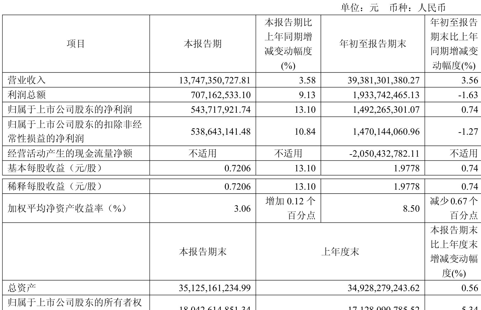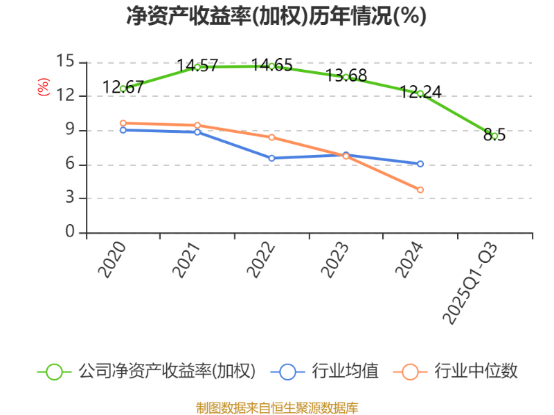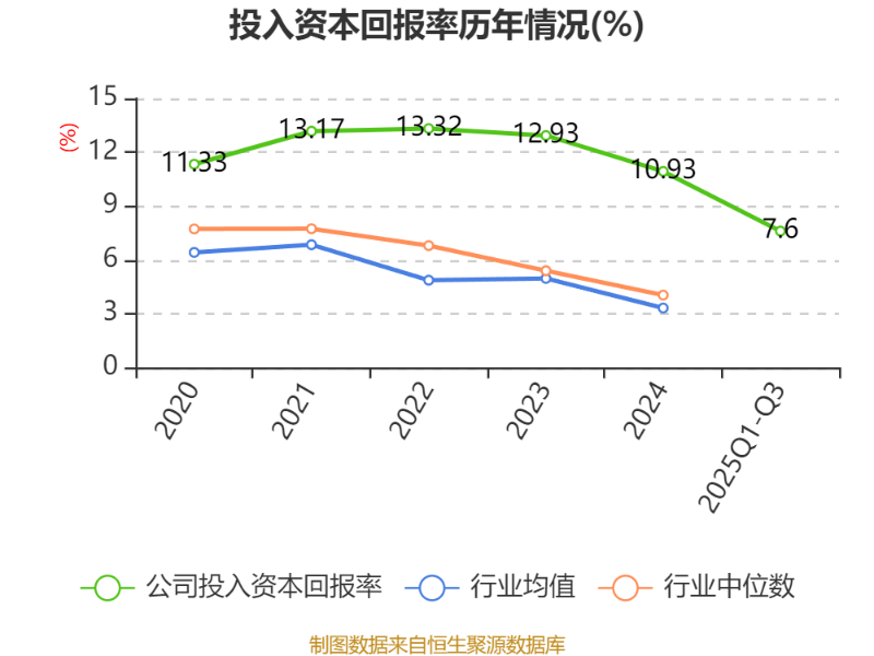 盈利能力方面, 2025年前三季度公司加权平均净资产收益率为8.5%,同比下降0.67个百分点。公司2025年前三季度投入资本回报率为7.6%,较上年同期下降0.53个百分点。