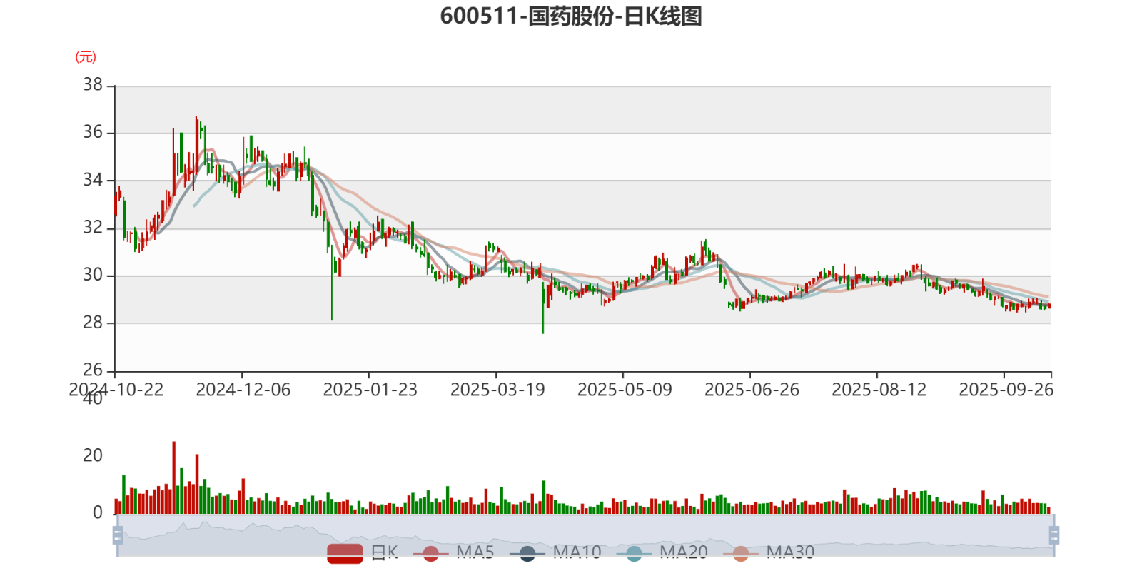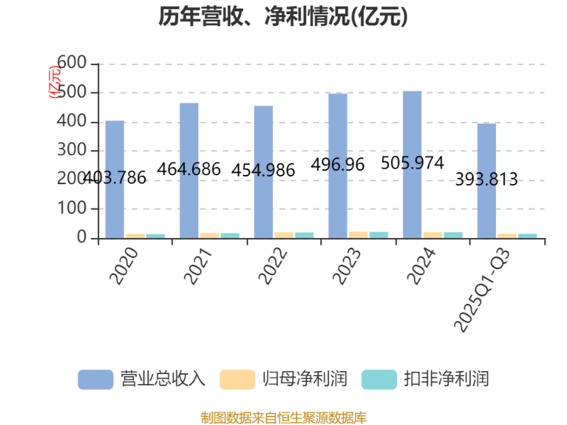 中证智能财讯国药股份(600511)10月22日披露2025年第三季度报告。前三季度公司实现营业总收入393.81亿元,同比增长3.56%;归母净利润14.92亿元,同比增长0.74%;扣非净利润14.7亿元,同比下降1.27%;经营活动产生的现金流量净额为-20.5亿元,上年同期为-10.3亿元;报告期内,国药股份基本每股收益为1.9778元,加权平均净资产收益率为8.50%。