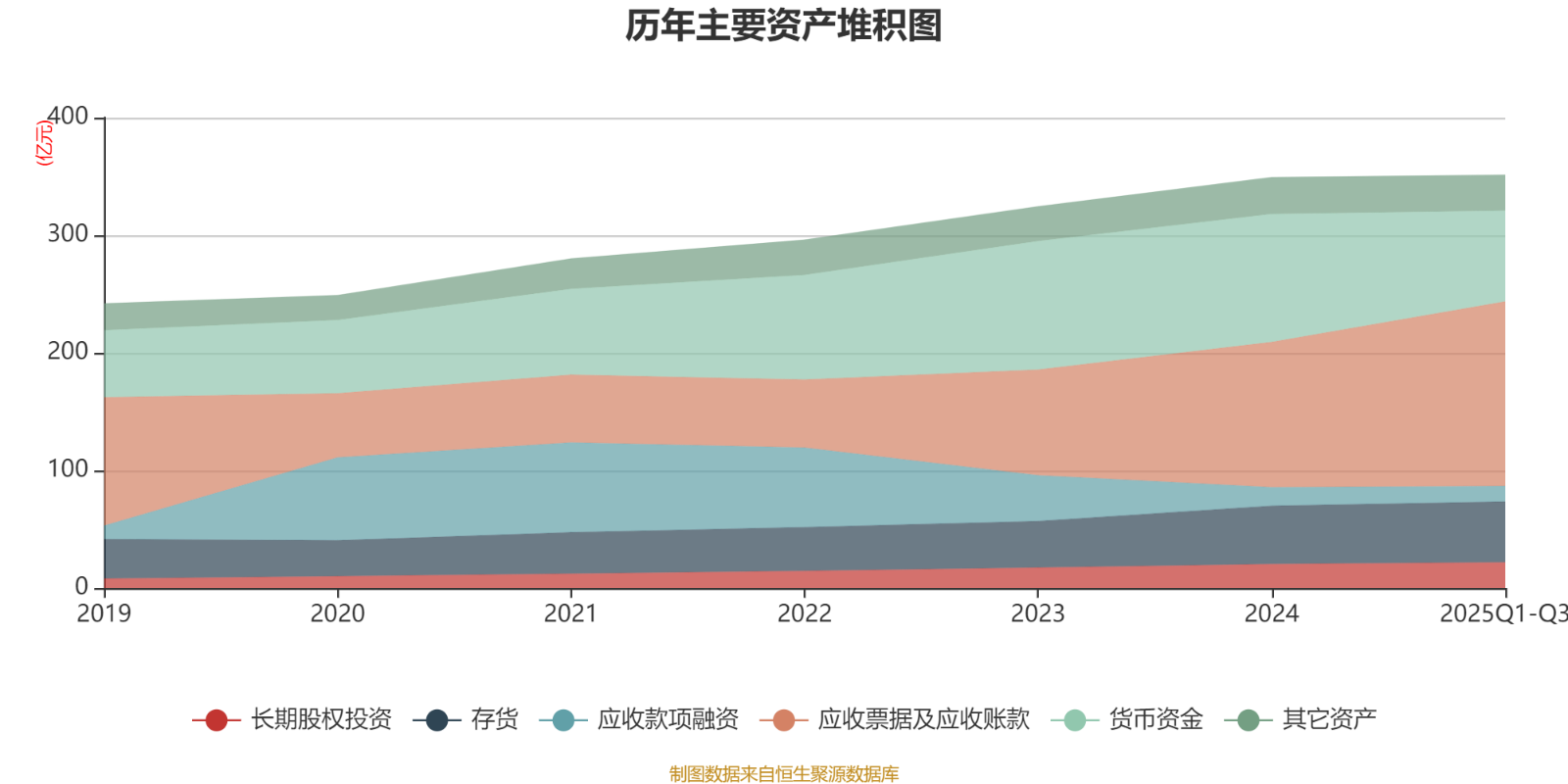 资产重大变化方面,截至2025年三季度末,公司应收票据及应收账款较上年末增加27.1%,占公司总资产比重上升9.32个百分点;货币资金较上年末减少29.02%,占公司总资产比重下降9.17个百分点;应收款项融资较上年末减少16.11%,占公司总资产比重下降0.75个百分点;存货较上年末增加4.18%,占公司总资产比重上升0.51个百分点。