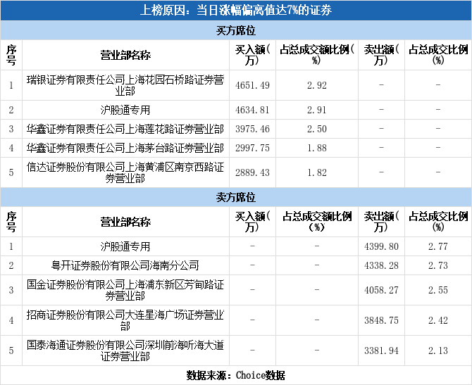 沪股通现身龙虎榜,海南机场涨停(12-22)