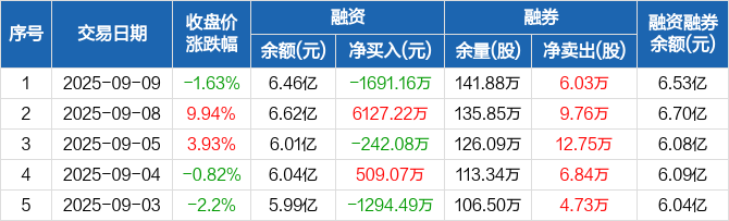 方大炭素:融资净偿还1691.16万元,融资余额6.46亿元(09-09)