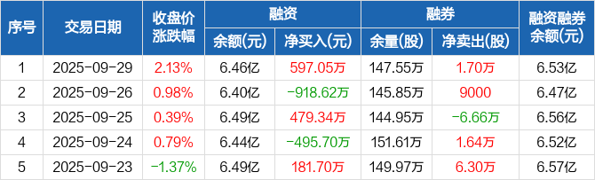 方大炭素:融资净买入597.05万元,融资余额6.46亿元(09-29)