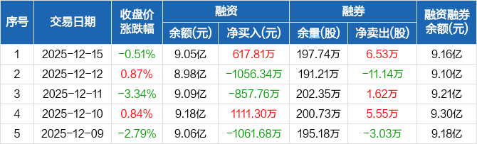 方大炭素:融资净买入617.81万元,融资余额9.05亿元(12-15)
