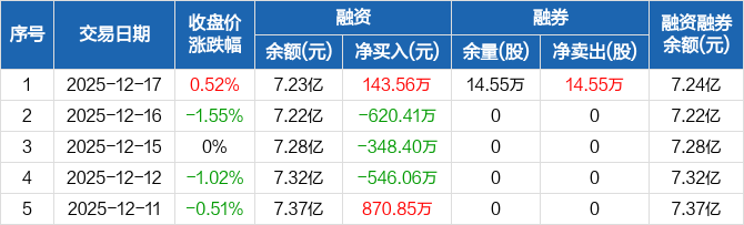康美药业:融资净买入143.56万元,融资余额7.23亿元(12-17)