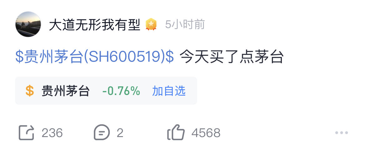 事实上,这并非段永平首次发声支持贵州茅台。早在6月底茅台股价低迷时,他就曾鼓励贵州茅台投资者“大家在害怕什么呢?”。此外,段永平还曾多次强调“茅台是茅台最好的背书”“高档酒里,茅台最经济实惠。”
