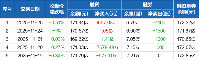 贵州茅台:融资净买入6657.03万元,融资余额171.34亿元(11-25)