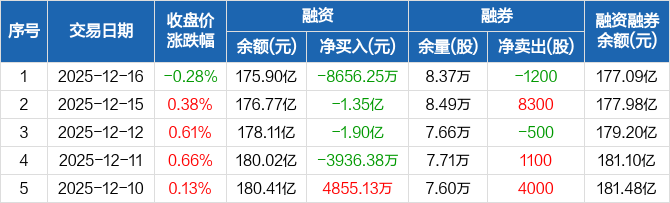 贵州茅台:连续4日融资净偿还累计4.51亿元(12-16)