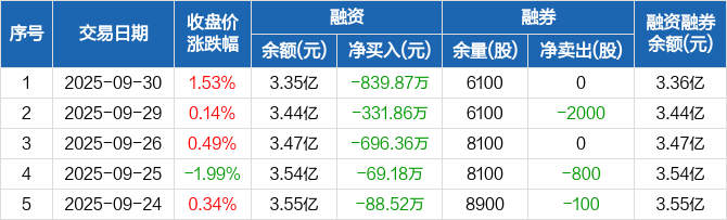 贵航股份:连续5日融资净偿还累计2025.78万元(09-30)