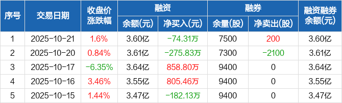 贵航股份:融资净偿还74.31万元,融资余额3.6亿元(10-21)
