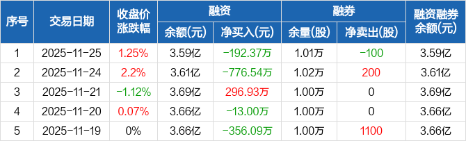 贵航股份:融资净偿还192.37万元,融资余额3.59亿元(11-25)