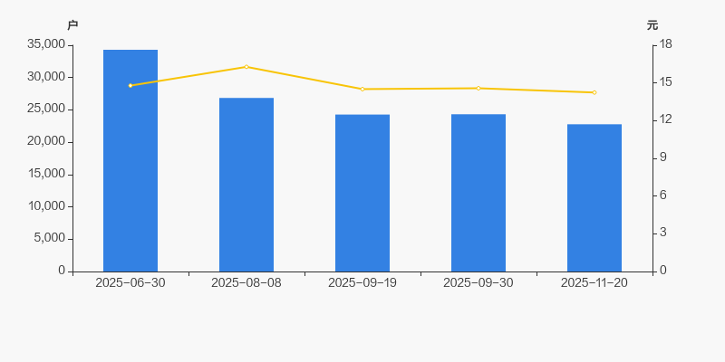 2025年6月30日至今,公司股东户数显著下降,区间跌幅为33.60%。2025年6月30日至2025年11月20日区间股价下降3.72%。