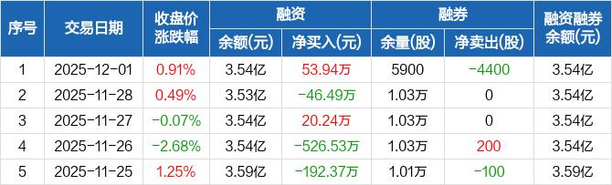 贵航股份:融资净买入53.94万元,融资余额3.54亿元(12-01)