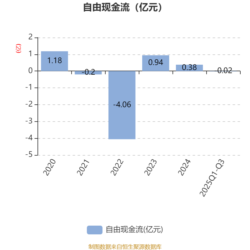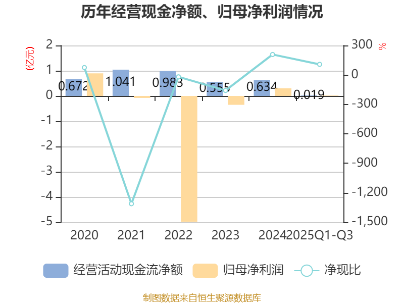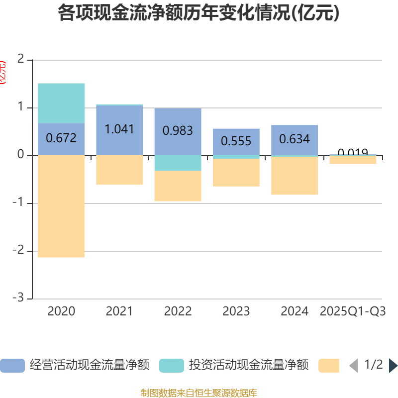 2025年前三季度,公司经营活动现金流净额为190.51万元,同比下降77.88%;筹资活动现金流净额-1703.27万元,同比增加5789.63万元;投资活动现金流净额-106.11万元,上年同期为-344.71万元。