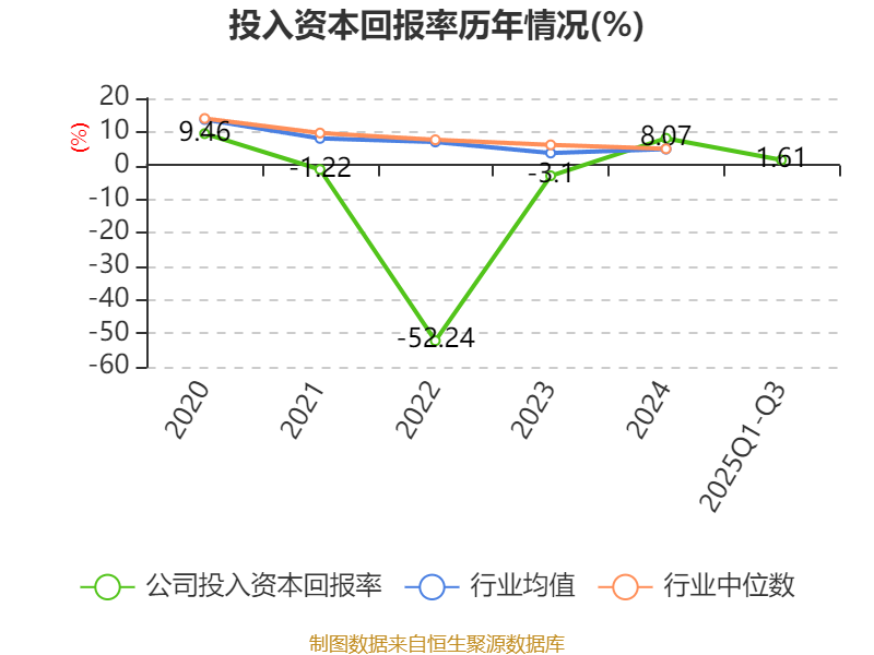 盈利能力方面, 2025年前三季度公司加权平均净资产收益率为0.55%,同比上升0.53个百分点。公司2025年前三季度投入资本回报率为1.61%,较上年同期下降1.12个百分点。