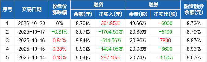 天士力:融资净买入361.85万元,融资余额8.7亿元(10-20)