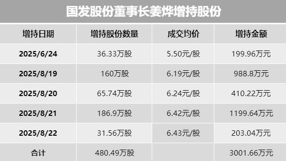 8月25日晚间,国发股份(600538.SH)发布公告称,公司董事长姜烨已完成增持计划,其通过上海证券交易所集中竞价交易方式累计增持公司股份480.49万股,累计增持金额为3001.66万元。此前公司宣布董事吴培诚已完成增持。高管“接力”增持股份,向市场传递积极信号,增强投资者信心。