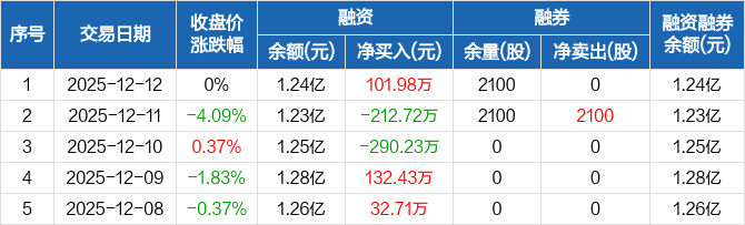 卓郎智能:融资净买入101.98万元,融资余额1.24亿元(12-12)