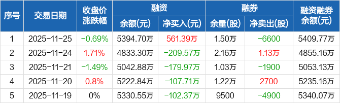 深高速:融资净买入561.39万元,融资余额5394.7万元(11-25)