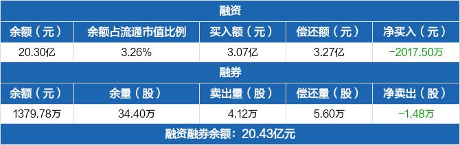 厦门钨业:融资净偿还2017.5万元,融资余额20.3亿元(12-18)