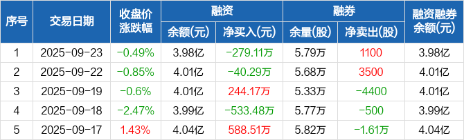 保变电气:融资净偿还279.11万元,融资余额3.98亿元(09-23)