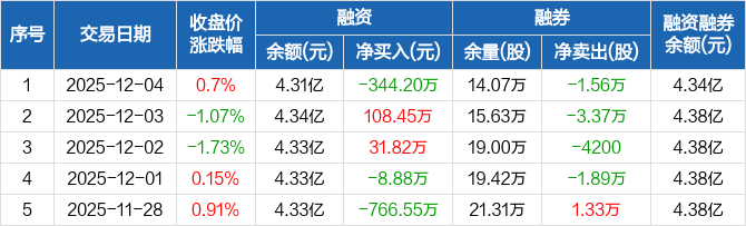 国睿科技:融资净偿还344.2万元,融资余额4.31亿元(12-04)